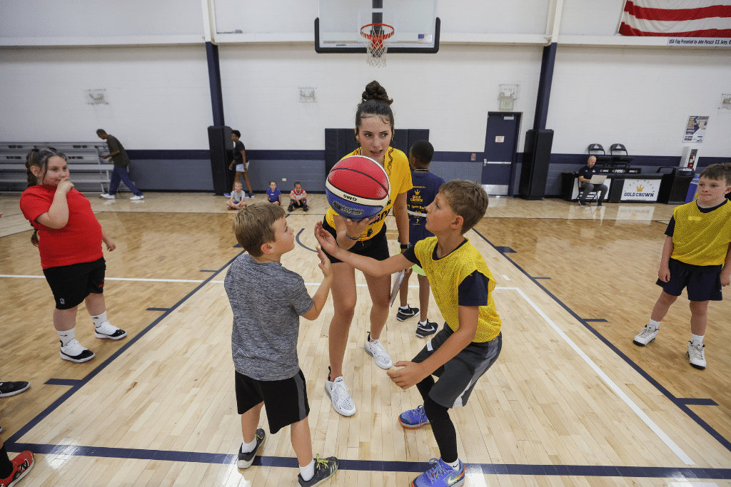 - AM/Coed sessions: Play with a smaller ball and on 9 ft. hoops